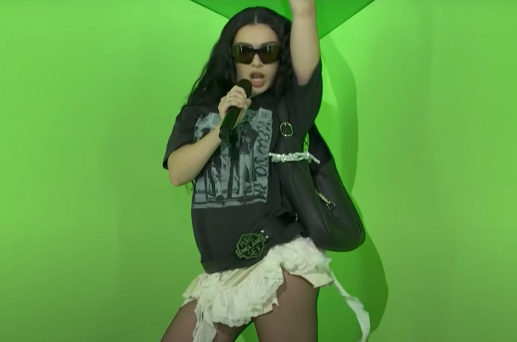 Para su segunda canción, Charli fue presentada por SNL El miembro del reparto Bowen Yang (que vestía una camiseta de Vroom Vroom), antes de lanzarse a una interpretación llena de energía de “Sympathy Is a Knife”. Vestida toda de negro, Charli ofreció una actuación digna de un club frente a una pantalla blanca gigante adornada con las palabras “Party” y “Girl” garabateadas en el suelo en letras negritas.