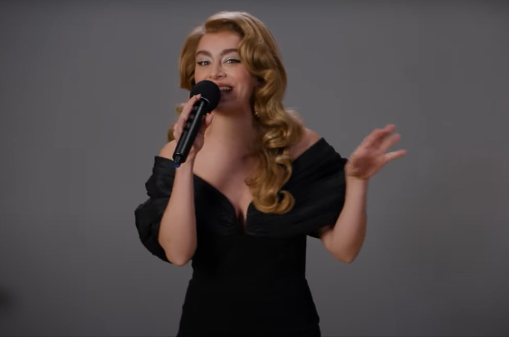 Charli comienza con una impresión acertada de Adela. Vestida con un elegante vestido negro y luciendo un cabello largo y ondulado que recuerda el look de la cantante británica durante su residencia Weekends With Adele en Las Vegas, Adele de Charli exclama: “Oh, hola, ¿puedo quitarme los zapatos? ¡Está bien, malvado! mientras se quita los tacones y se pavonea por un camino de ladrillos amarillos. “¡Ay dios mío! ¡Dije el nombre de la maldita película! ¡Eso es jodidamente gracioso! añade, riendo con estilo exagerado.