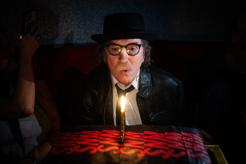 Fue una noche relajada. Charly estaba sonriente y elegante, con una camisa blanca, corbata negra, campera de cuero y sombrero negro. ¿Regalos? Muchos discos (en vinilo, por supuesto; entre ellos, material de Prince y Crosby, Stills & Nash), algunos libros y mucho amor. La velada estuvo musicalizada por un DJ SET de Facu Íñigo. Y Charly tocó un pianito electrónico que llevaron los Turf.