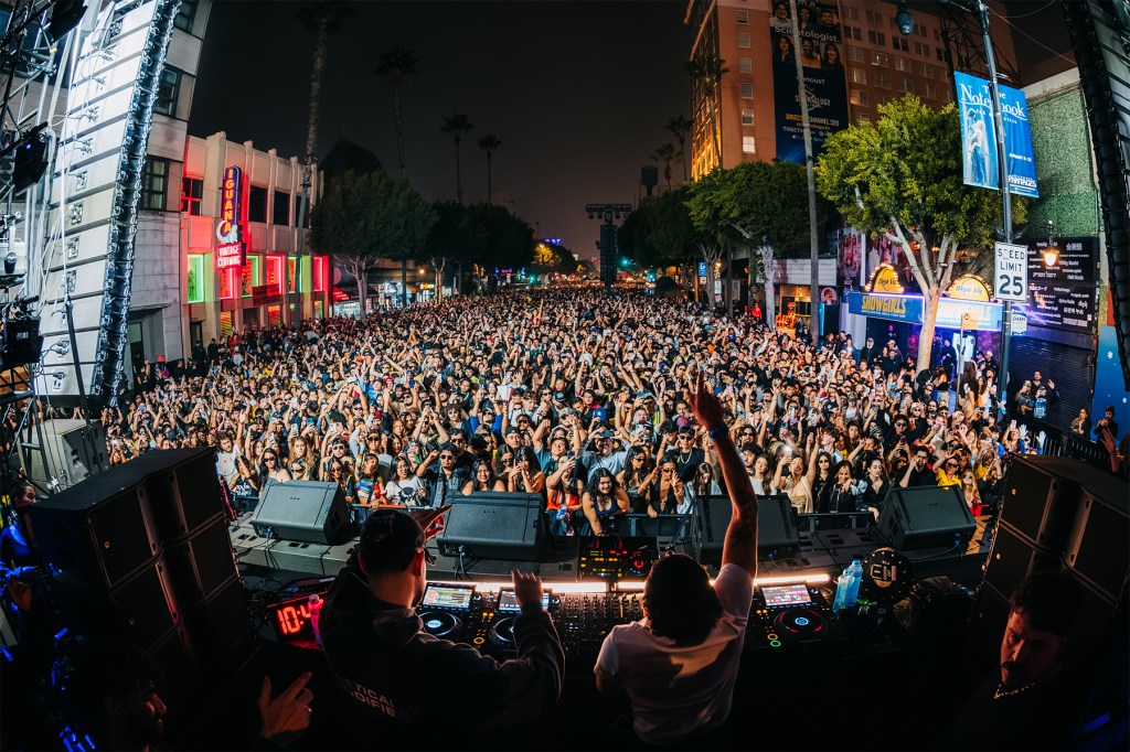 Este fin de semana, el mayor espectáculo de música electrónica de Los Ángeles no tuvo lugar en un club nocturno ni siquiera en un estadio, sino en la intersección de Hollywood Boulevard y Vine Street.