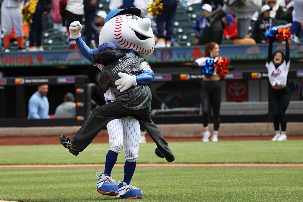 Un título en un Historia de Instagram de la banda que celebra el momento, el tono y el abrazo de Mr. Met, se lee “Absolutamente un honor”, y DiGesu agrega “El mejor día de todos”. La banda, orgullosa de Brooklyn, tiene una historia con Mr. Met, con la mascota con cabeza esférica apareciendo para posar con el grupo detrás del escenario en su show de Brooklyn Paramount en octubre y DiGesu luciendo una camiseta de los Mets para la presentación de la banda. NPR Escritorio pequeño concierto en diciembre.