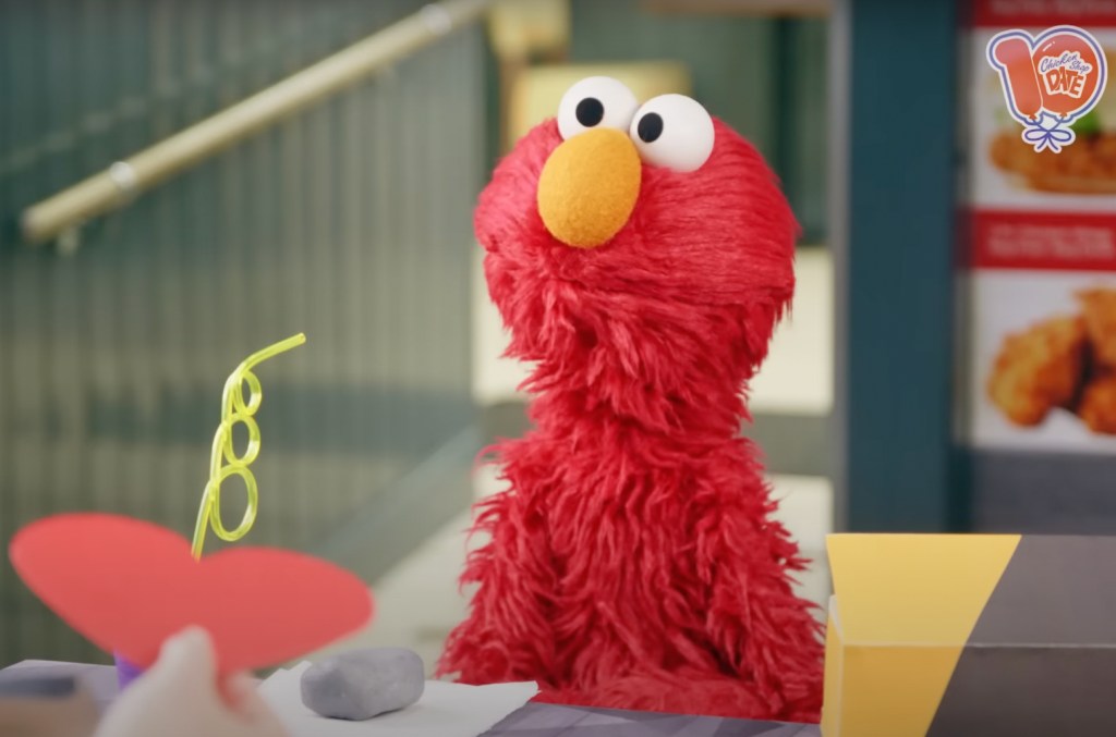 Elmo viajó desde Barrio Sésamo hasta una pollería en Londres para tener una cita con Amelia Dimoldenberg.