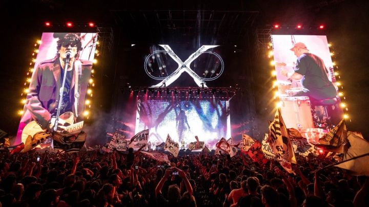“Babilonia”, “Todo Pasa” y “Tan Solo” entraron en este segmento centrado en Chac Tu Chac, Ay Ay Ay, 3er Arco y Azul. Y coronó una versión de “Maradó”, acompañada de un video de Diego en las impresionantes pantallas que cubrían el escenario: dos a los costados, una atrás de los músicos y una más arriba, en la que predominó la imagen del logo de Los Piojos.