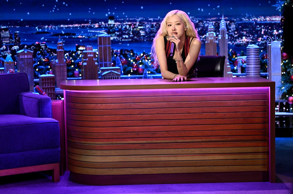 En el episodio del miércoles por la noche (11 de diciembre) de El show de esta noche Protagonizada por Jimmy Fallon, ROSA hará su debut en solitario en el estudio, interpretando una mezcla de “APT”. y “Toxic Till the End”, ambos de su recién estrenado Rosie álbum. En fotografías de la actuación exclusivas para Cartelerase puede ver a la cantante de BLACKPINK cantando detrás del icónico escritorio nocturno de Fallon, con los pies cómodamente levantados.