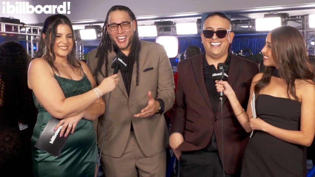 J-King y Maximan conversaron con Griselda Flores y Jessica Roiz de Billboard en la alfombra roja de los Premios Billboard de la Música Latina 2025.