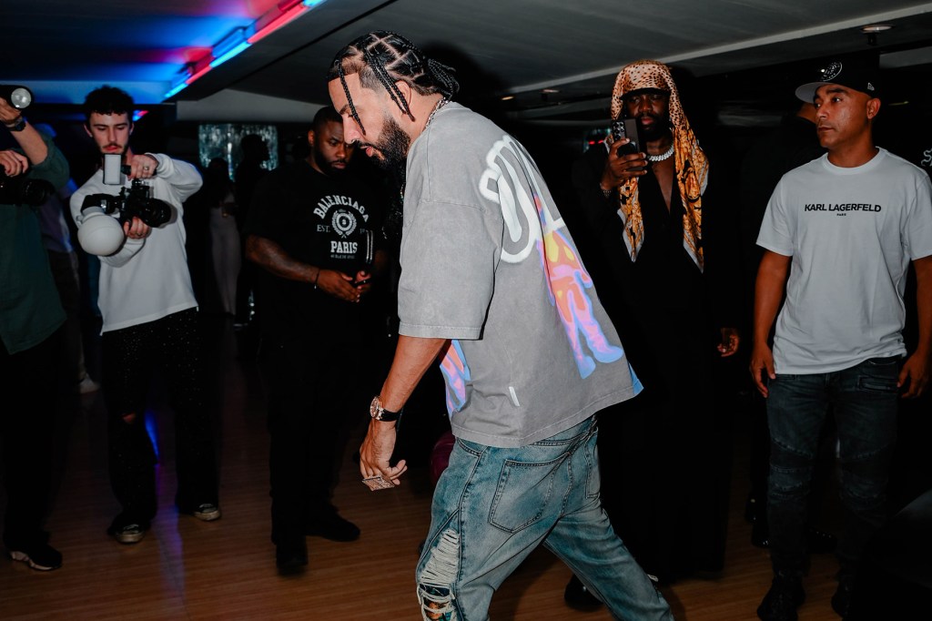 A pesar de las laxas reglas de seguridad, los atletas y las celebridades empacaron lentamente cada carril mientras las chicas de las botellas que transportaban letreros brillantes de marquesina anunciaron la llegada de un nuevo invitado VIP. La lista de invitados repleto de estrellas de esta noche marcó nombres como el ala defensiva de los Raiders de Los Vegas, Maxx Crosby, el ex campeón indiscutible ligero Devin Haney y el ex Centro de Miami Heat Hassan Whiteside. Los raperos Bizzy Crook, Zoey Dollaz y French Montana se mezclaron con atletas, influyentes y un “quién es quién” de la industria de la música. La multitud diversa representaba la experiencia habitual del jueves por la noche escondida detrás de la entrada sellada de Lucky Strike.