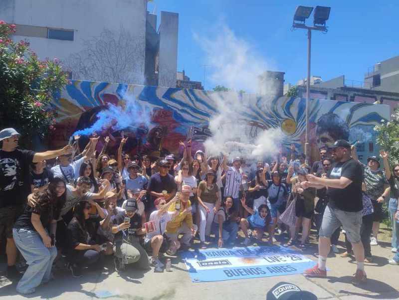 Al mediodía, un puñado de fans de los hermanos Gallagher se sumó al grupo de artistas que pintó para la ocasión el gran mural dedicado a Oasis a pasos de la calle Crisólogo Larralde al 1900. Un proyecto liderado por el británico Benjamin Rock, alias Sketch, que viajó especialmente desde Manchester.