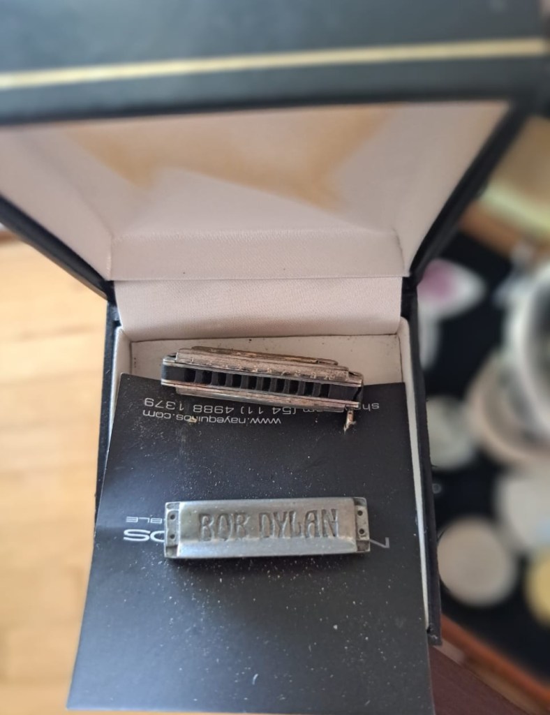 Pero entre sus tesoros más preciados hay dos: una armónica en miniatura con el nombre del artista y una servilleta firmada por el autor de “Subterranean Homesick Blues”, que pueden verse en el museo que el artista inauguró en su pueblo natal, Cañada Rosquín.