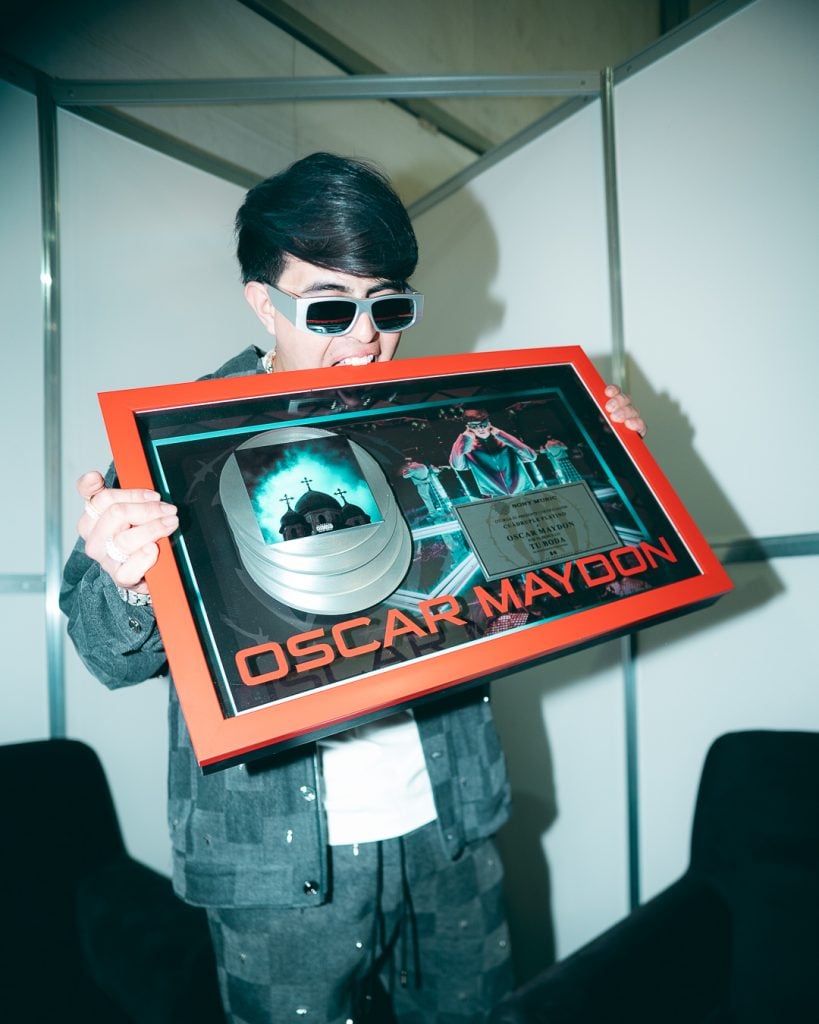 Además, para coronar la fecha, OSCAR MAYDON recibió el reconocimiento de Cuádruple Platino por su éxito de su mega hit “Tu Boda”, una canción que lo ha llevado a las listas internacionales y lo ha colocado a la cabeza de esta nueva generación de artistas que mueven al mundo latino.
