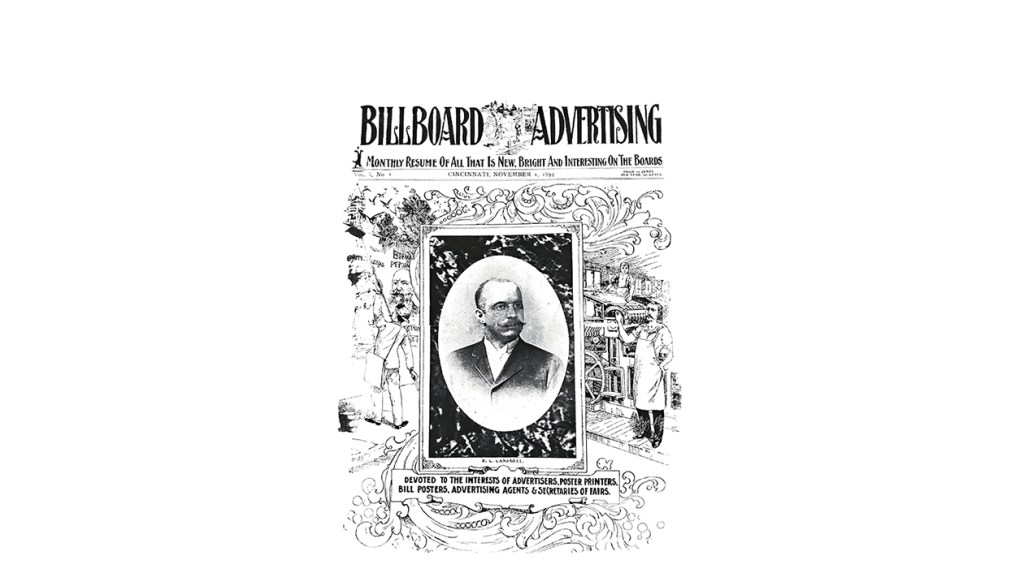 El primer tema de portada de la revista fue RC Campbell, entonces presidente de la Associated Bill Posters' Association. “No se puede rendir homenaje más apropiado al Sr. Campbell que afirmar que es un hombre de recursos infinitos, ideas progresistas e incansable laboriosidad”. Cartelera señalado en la edición inaugural.
