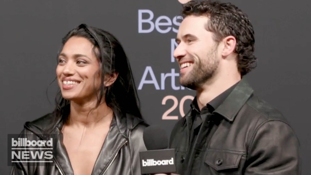 Robbie GK y Nadine Bhabha se encontraron con Tetris Kelly de Billboard en la fiesta de Mejor Artista Nuevo de Spotify 2026.