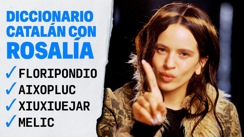 Rosalía: Hola, soy Rosalía y aquí tenéis mi diccionario con algunas palabras en español y catalán.