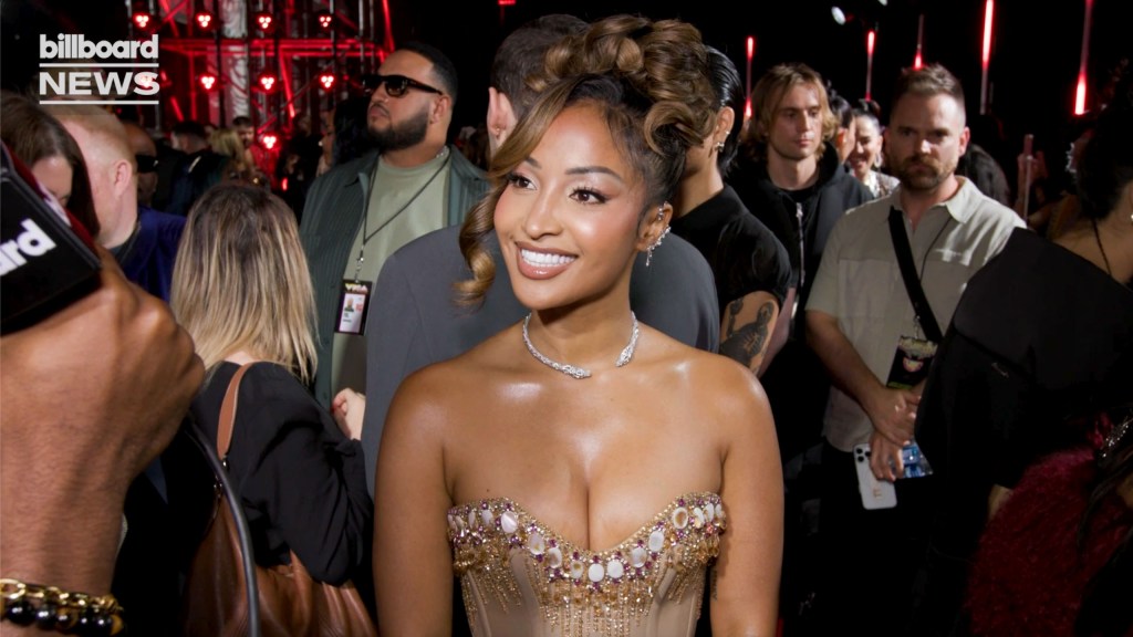 Shenseea se encontró con Kyle Denis de Billboard en la alfombra roja de los Awards de Video Music 2025 MTV.