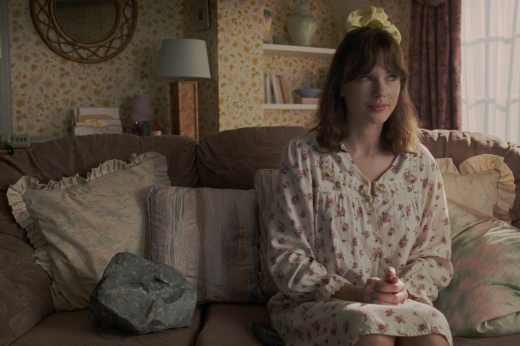 En una última referencia al video de “Opalite”, Swift dice que “podría ir a comprar un pretzel gigante al centro comercial para celebrarlo, iykyk”.