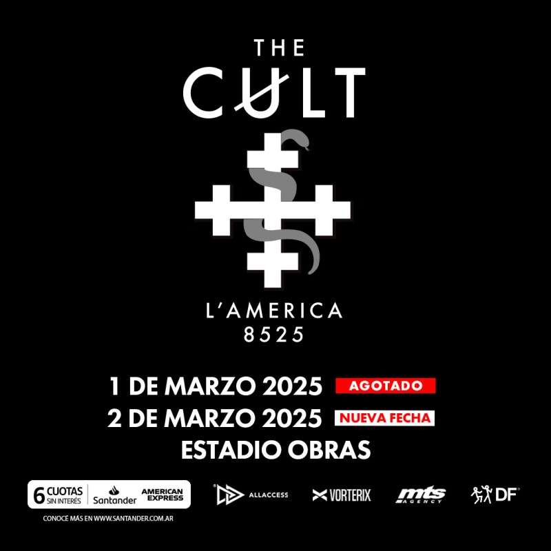 The Cult celebrará sus más de cuatro décadas de historia con dos shows Buenos Aires. La banda inglesa, liderada por Ian Astbury y Billy Duffy, agotó las entradas para el concierto del 1° de marzo en el Estadio Obras (Av. del Libertador 7395, CABA), por lo que este jueves se anunció un nuevo show.